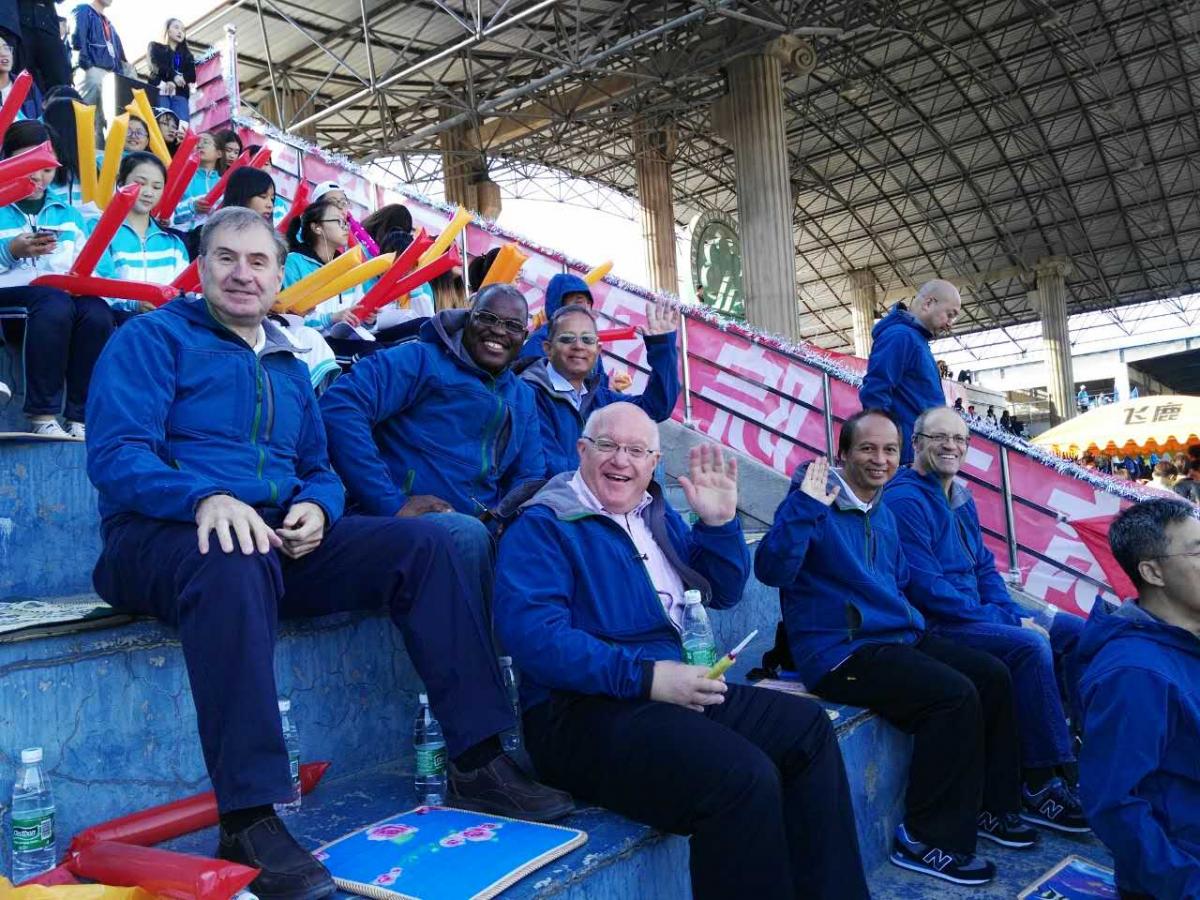 运动会开幕式上,公司入场队伍由20名中方教职工,15名外籍教师和20名员工代表组成,彰显了公司教育国际化的办学特色与和谐共进的团队氛围。师生代表手持beats365及合作校的旗帜,呼号“商为世尚,学为品行,全面发展,携手同行”的团队口号,将“商院人”的新风采集中展现。