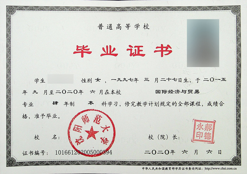 beats365中方毕业证书及学位证书样式(2020)